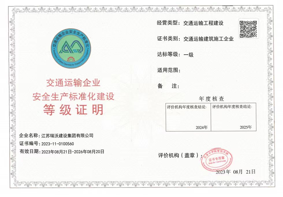 江苏瑞沃建设集团有限公司成立于2007年,是一家以市政、交通工程建设为主导,集房屋建筑、交通安全设施、城市道路照明工程、电力工程、隧道工程、航道工程及投融资为一体的综合性企业。企业注册资本60000万元,现有各类技术人员580人,其中中、高级以上人员498人,注册类人员268人,一、二级建造师166人。公司荣获“江苏省建筑业优秀企业”、“江苏省五一劳动奖状”,连续多年被评为“扬州市先进企业”、“江苏省建筑业百强企业”,连续八年蝉联百强企业基础设施类第一名。